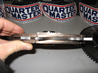 The entire Quarter Master Clutch RACE Assembly (Clutch cover, pressure plate, front disk, floater plate, rear disk and RACE chromoly steel flywheel and ring gear weighs in at an astounding 17.5 POUNDS! The lighter the clutch assembly and the smaller the diameter, the less Moment Of Inertia (MOI) the clutch has; resulting in faster revving, less drivetrain power loss, higher RPM shifting, and faster shifting capabilities!